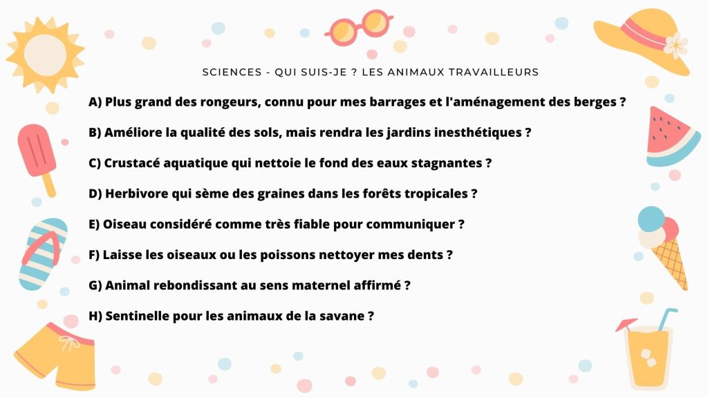 Il existe toutefois des animaux qui « travaillent » pour eux-mêmes, pour la nature, ou pour le bien-être d’autres espèces, nous y compris de manière « naturelle ». Serez-vous les retrouver dans les questions ci-dessous ?